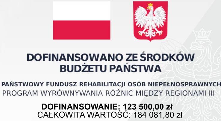 - Projekt „KROKI KU NIEZALEŻNOŚCI”. Projekt jest współfinansowany ze środków PAŃSTWOWEGO FUNDUSZU REHABILITACJI OSÓB NIEPEŁNOSPRAWNYCH. Więcej: Projekt „KROKI KU NIEZALEŻNOŚCI”